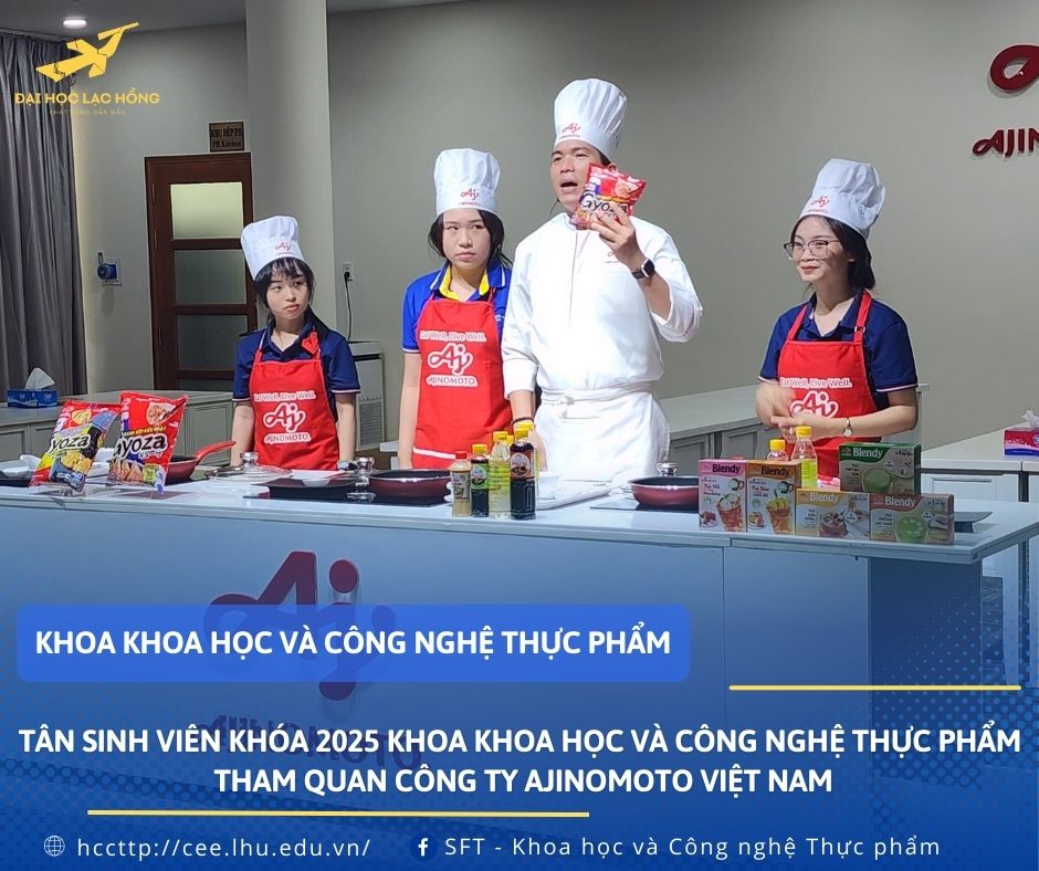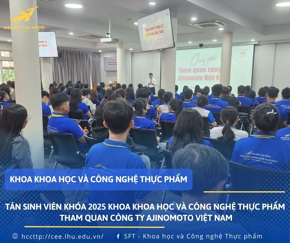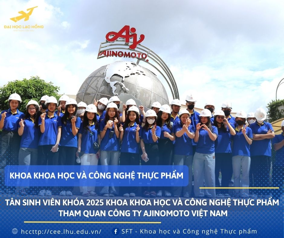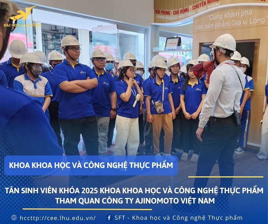 Ngày 27/08/2025, Khoa Khoa học và Công nghệ thực phẩm, Trường Đại học Lạc Hồng đã tổ chức chuyến tham quan thực tế tại Công ty TNHH Ajinomoto Việt Nam dành cho tân sinh viên khóa 2025 cùng sinh viên toàn khoa. Đây là một trong những hoạt động thường niên, nằm trong định hướng gắn kết đào tạo với thực tiễn, tạo cơ hội cho sinh viên tiếp cận môi trường doanh nghiệp ngay từ những năm đầu đại học.