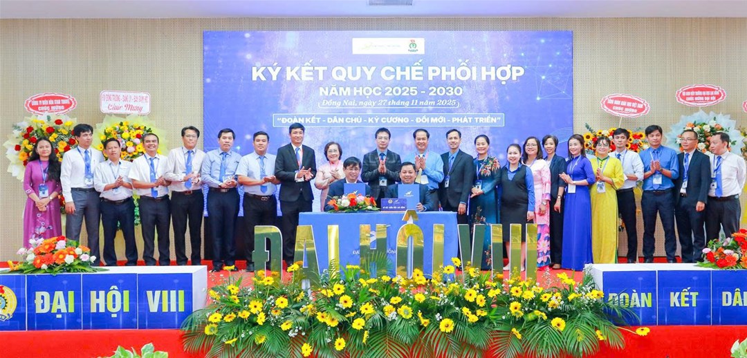 Hội nghị đã ký kết Thỏa ước lao động tập thể - Quy chế phối hợp giữa Nhà trường và Công đoàn năm học 2025 - 2026.