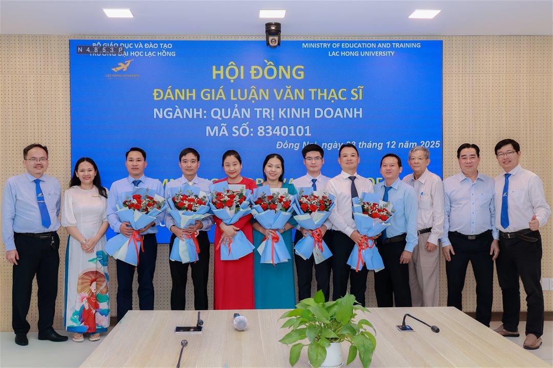 Ngày 23 tháng 12 năm 2025, tại phòng họp cơ sở 1 của Trường Đại học Lạc Hồng (LHU), 08 học viên ngành Quản trị kinh doanh đã xuất sắc hoàn thành và bảo vệ luận văn thạc sĩ của mình. Buổi bảo vệ diễn ra trong không khí trang trọng và đầy tính học thuật, đánh dấu một bước ngoặt quan trọng trong hành trình học tập và nghiên cứu của các học viên.
