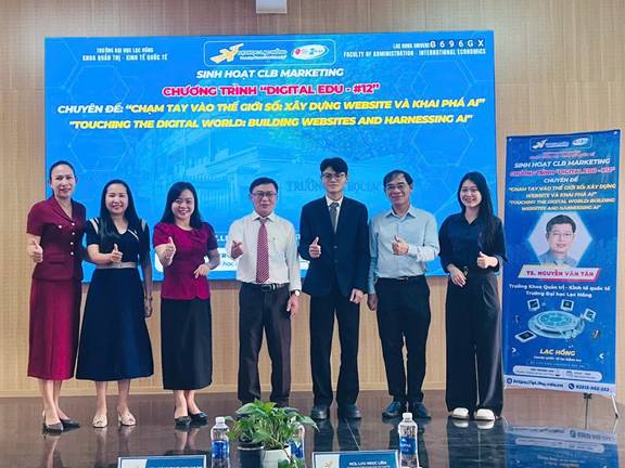 Buổi sinh hoạt CLB Marketing với chủ đề “Chạm tay vào thế giới số: Xây dựng Website và khai phá AI” nằm trong chuỗi chương trình Digital Edu #12 của Khoa Quản trị – Kinh tế Quốc tế được diễn ra vào sáng ngày 18/11/2025 tại Hội trường I209 – Cơ sở 6 Trường Đại học Lạc Hồng. Sự kiện đã thu hút đông đảo sinh viên tham gia, mang đến nhiều kiến thức bổ ích về Website, AI và Marketing số.