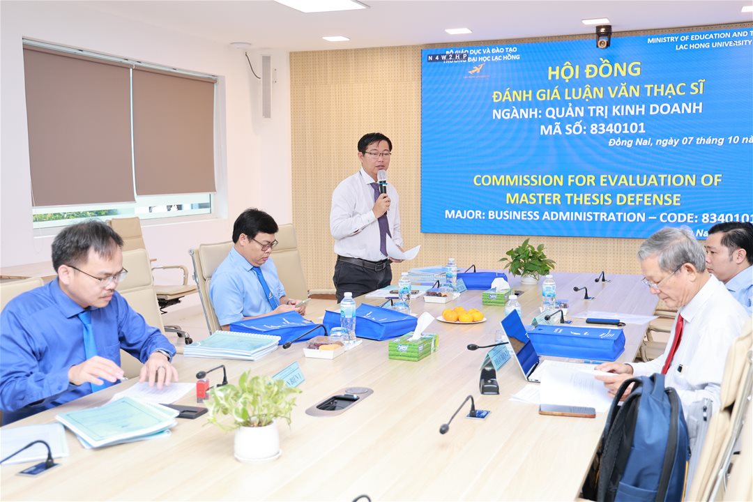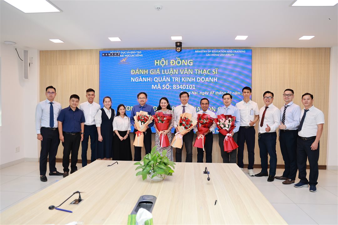 Ngày 07 tháng 10 năm 2025, tại phòng họp cơ sở 1 của Trường Đại học Lạc Hồng (LHU), 10 học viên ngành Quản trị kinh doanh đã xuất sắc hoàn thành và bảo vệ luận văn thạc sĩ của mình. Buổi bảo vệ diễn ra trong không khí trang trọng và đầy tính học thuật, đánh dấu một bước ngoặt quan trọng trong hành trình học tập và nghiên cứu của các học viên.