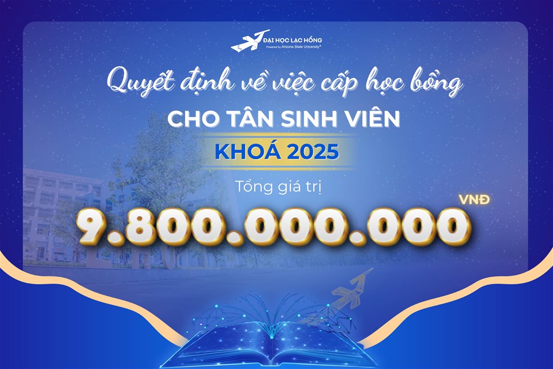 Bước vào năm học 2025 – 2026, Đại học Lạc Hồng tiếp tục khẳng định triết lý giáo dục nhân văn “Trao cơ hội – Chắp cánh ước mơ – Đồng hành cùng tài năng trẻ” với tổng giá trị học bổng lên đến 9.800.000.000 đồng (chín tỷ tám trăm triệu đồng) dành cho Tân sinh viên khóa 2025. Hàng loạt chương trình học bổng đa dạng được trao tặng như: Học bổng Khoa học công nghệ, Học bổng Nữ sinh học kỹ thuật, Học bổng Vượt khó, Học bổng Đồng hành, Học bổng Doanh nghiệp, Học bổng Thủ lĩnh thanh niên, cùng nhiều suất học bổng khuyến khích học tập khác – tất cả đều mang ý nghĩa tôn vinh nỗ lực và tiếp sức hành trình tri thức cho sinh viên.