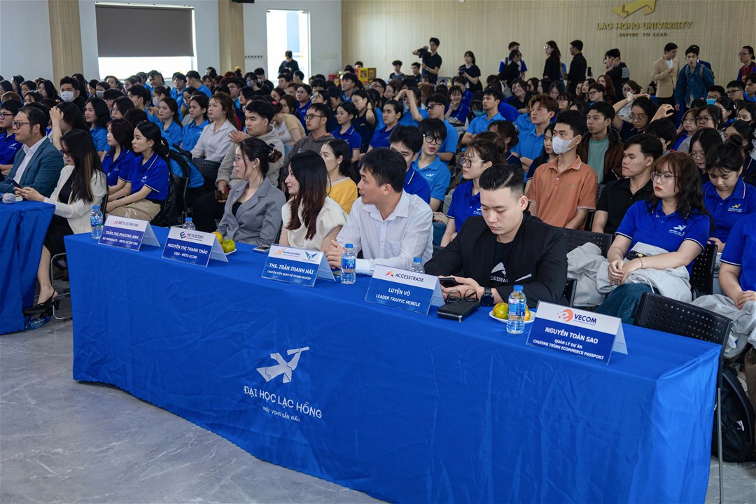 On March 7, 2026, the Faculty of Information Technology at Lac Hong University (LHU), in collaboration with the Vietnam E-commerce Association (VECOM), successfully organized the Ecom Tour, introducing the Ecommerce Passport training scholarship. The event aimed to strengthen the connection between the university, the association, and enterprises, while providing students with practical exposure to the e-commerce industry and the digital business ecosystem.
